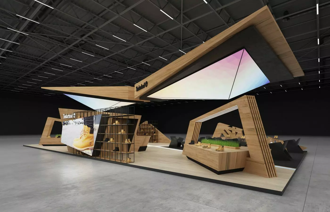 استفاده از متریالهای ترکیبی نیز میتواند در افزایش زیبایی و کارایی غرفه مؤثر باشد. برای مثال، ترکیب چوب و فلز میتواند جلوهای مدرن و صنعتی به غرفه ببخشد، در حالی که ترکیب شیشه و نورپردازی LED حس لوکس و مدرنی ایجاد میکند.